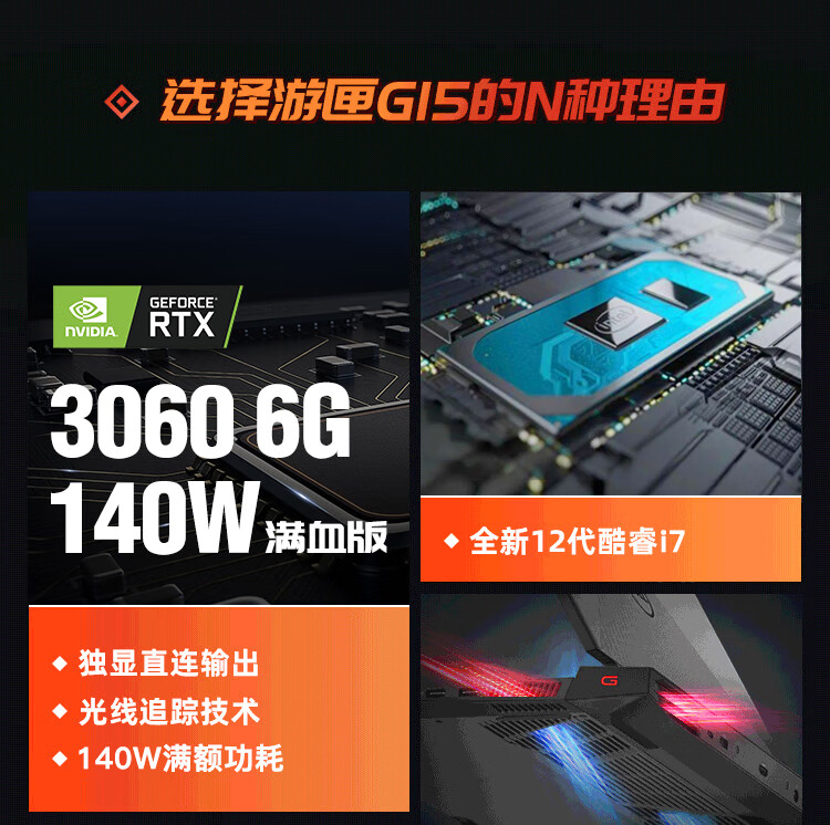 商品名稱(chēng):戴爾DELL游匣G15游戲本5520 15.6英寸 i5-12500H/16GB/512G/3050/120Hz/RTX3050 4G G15-5520-1646B 黑