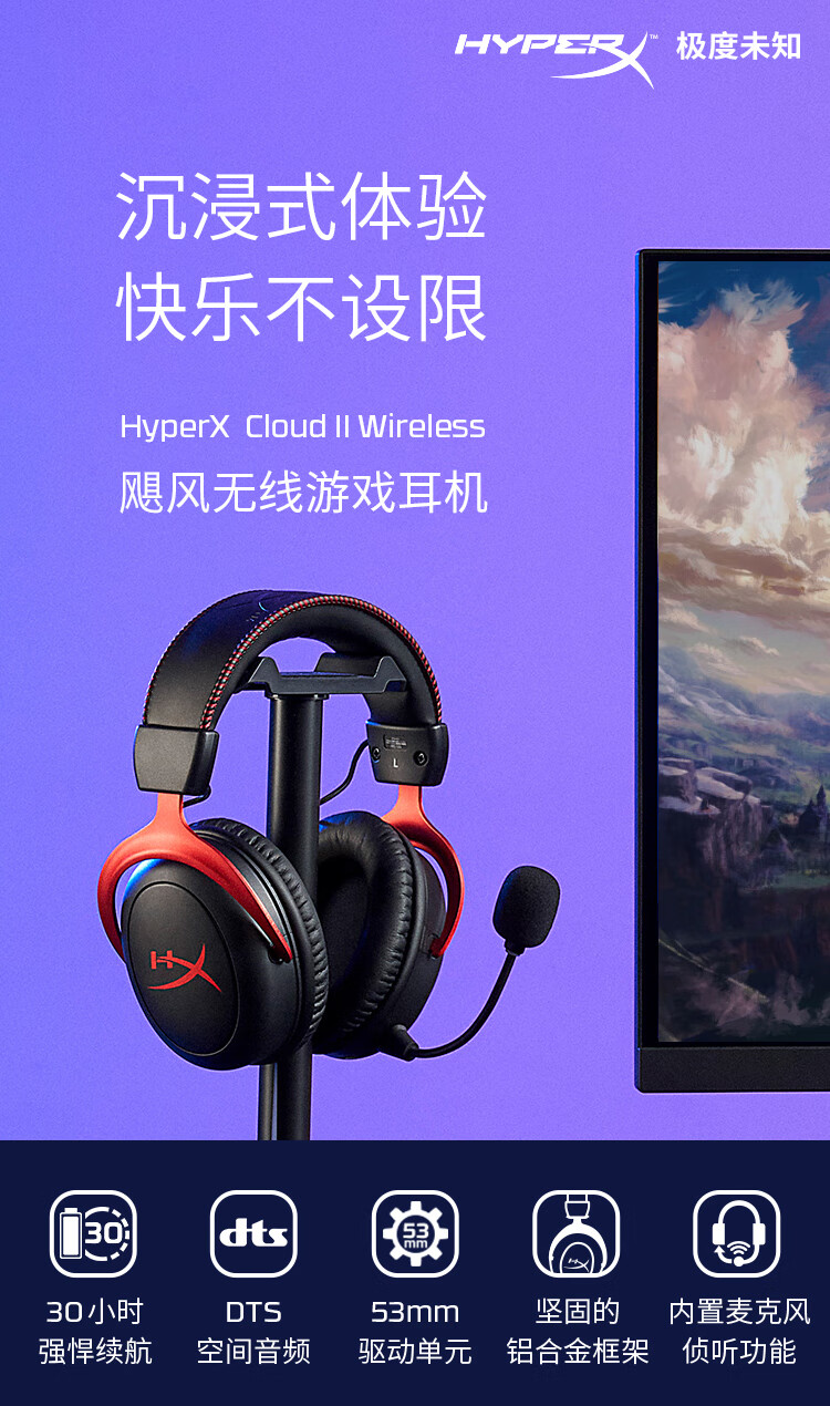 極度未知 颶風(fēng)2無(wú)線(xiàn)虛擬7.1 電競游戲耳機 電腦頭戴式耳麥 筆記本吃雞原金士頓 颶風(fēng)無(wú)線(xiàn) Cloud II Wireless