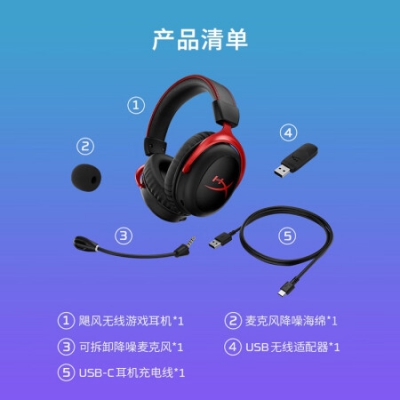 商品名稱(chēng):極度未知 颶風(fēng)2無(wú)線(xiàn)虛擬7.1 電競游戲耳機 電腦頭戴式耳麥 筆記本吃雞原金士頓 颶風(fēng)無(wú)線(xiàn) Cloud II Wireless