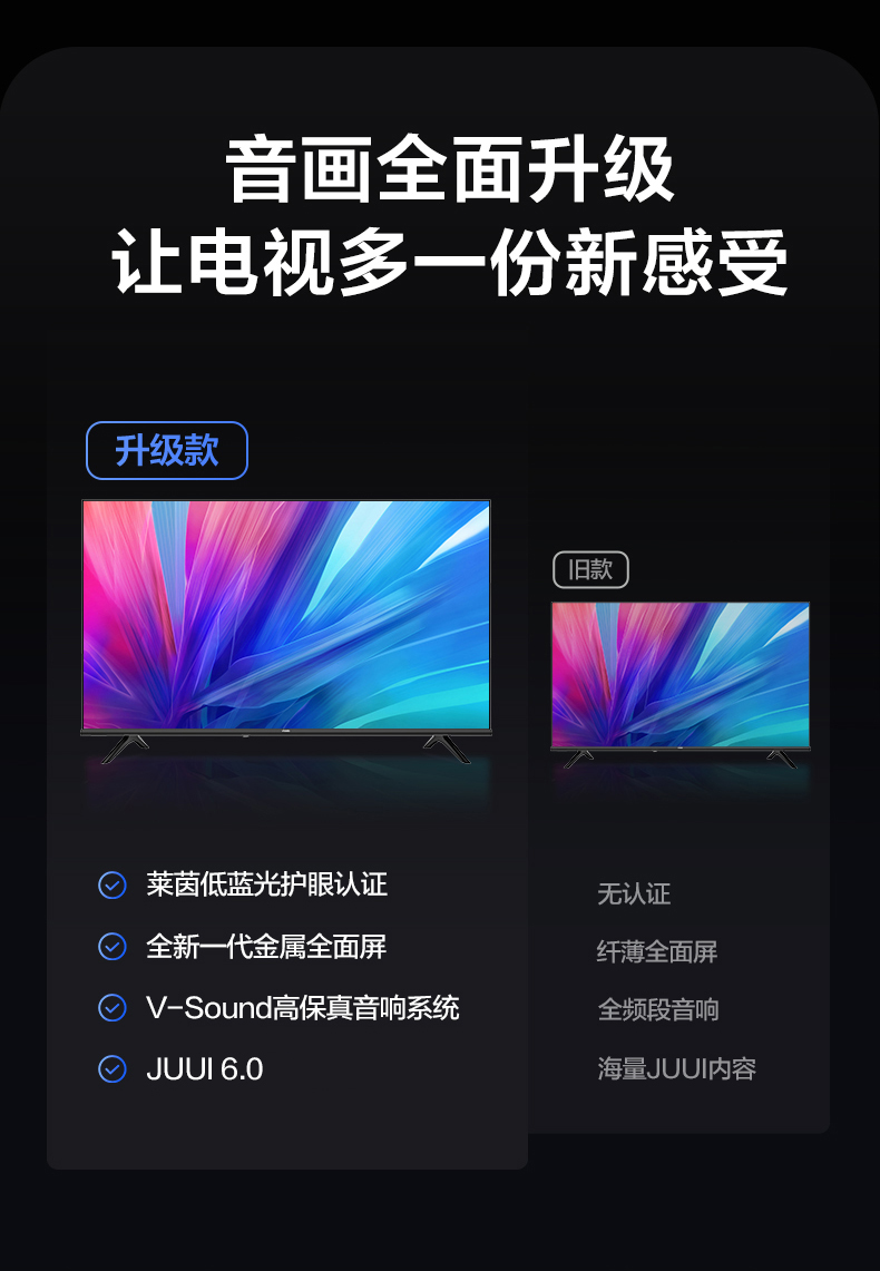 商品名稱(chēng):Vidda R43 海信 43英寸 全高清 超薄全面屏電視 智慧屏 1G+8G 教育電視 智能液晶電視以舊換新43V1F-R