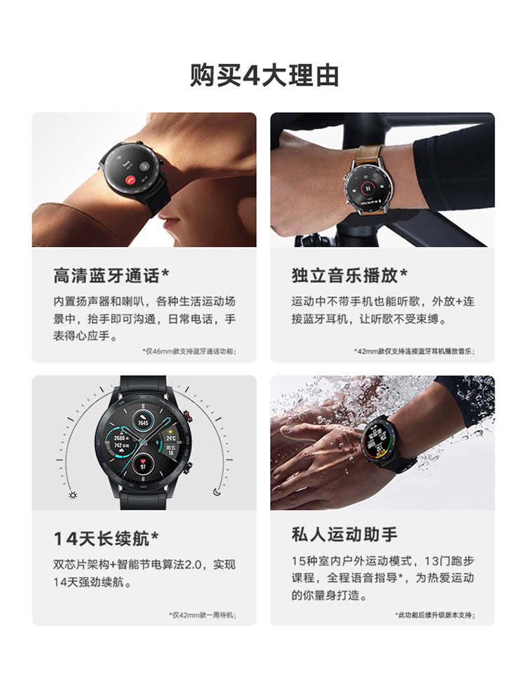 商品名稱(chēng):榮耀手表2 42mm 瑪瑙黑 智能手表 運動(dòng)戶(hù)外 麒麟A1芯片 高清彩屏 心臟血氧睡眠健康檢測 MagicWatch2男女