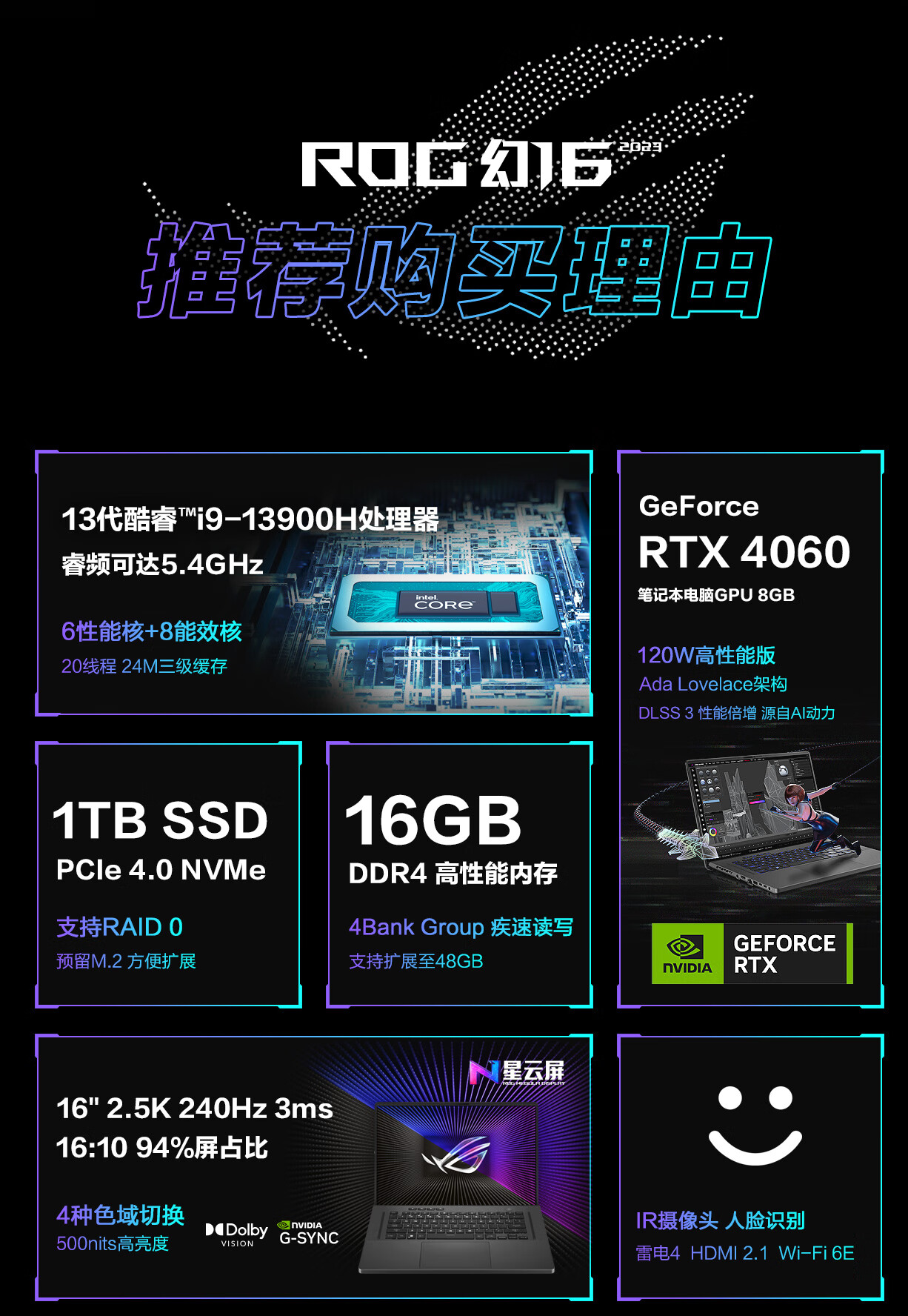 商品名稱(chēng):ROG幻16 2023 第13代英特爾酷睿i9 16英寸 星云屏 設計師輕薄高性能游戲本筆記本電腦(i9-13900H 16G 1T RTX4060 2.5K 240Hz P3廣色域)灰