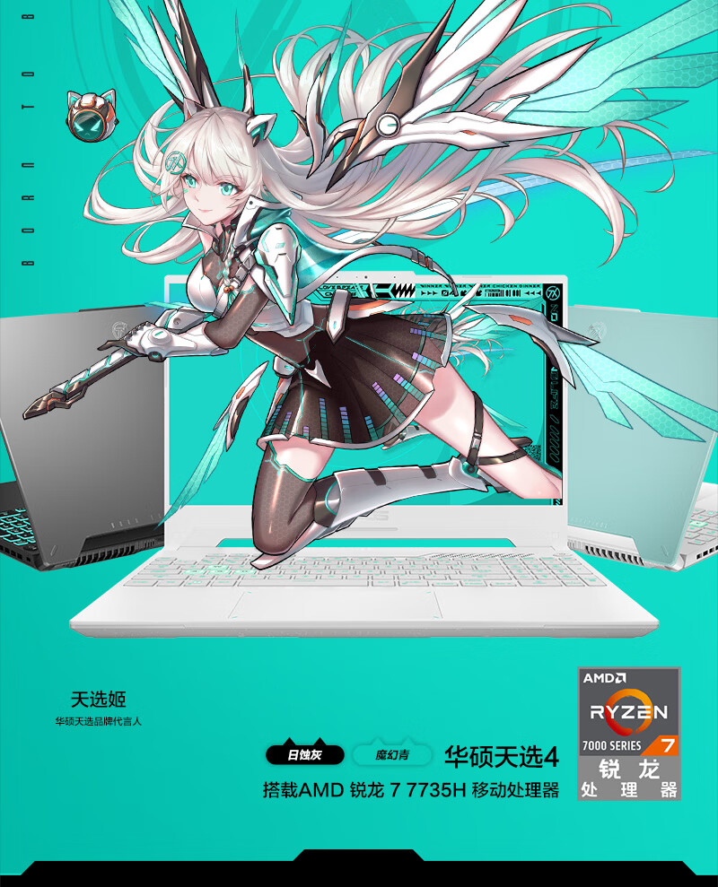 華碩(ASUS)天選4 銳龍版 15.6英寸高性能電競游戲本 筆記本電腦(新R7-7735H 16G 512G RTX4050 144Hz高色域電競屏)灰