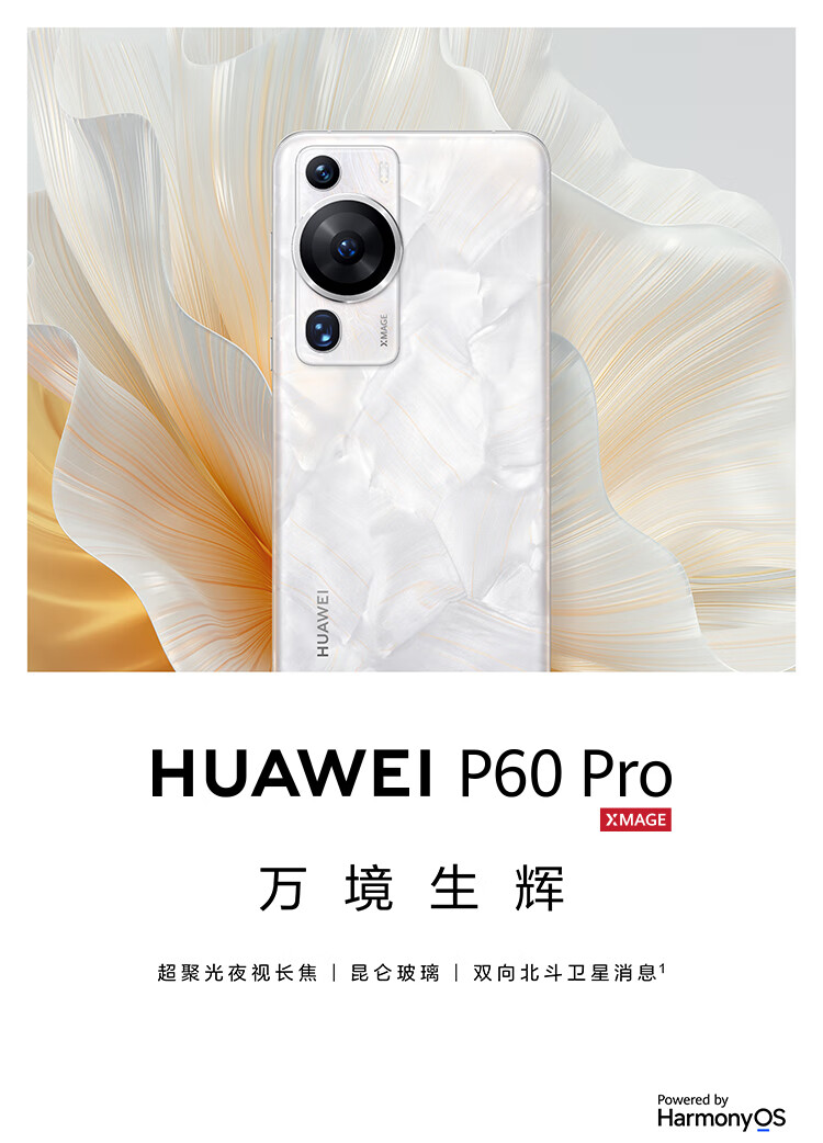 商品名稱(chēng):華為/HUAWEI P60 Pro 超聚光夜視長(cháng)焦 昆侖玻璃 雙向北斗衛星消息 256GB 洛可可白 鴻蒙智能旗艦手機