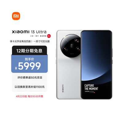 商品名稱(chēng):小米13Ultra 徠卡光學(xué)全焦段四攝 第二代驍龍8處理器 2K超色準屏 IP68防水 12+256GB 白色 小米手機 5G手機